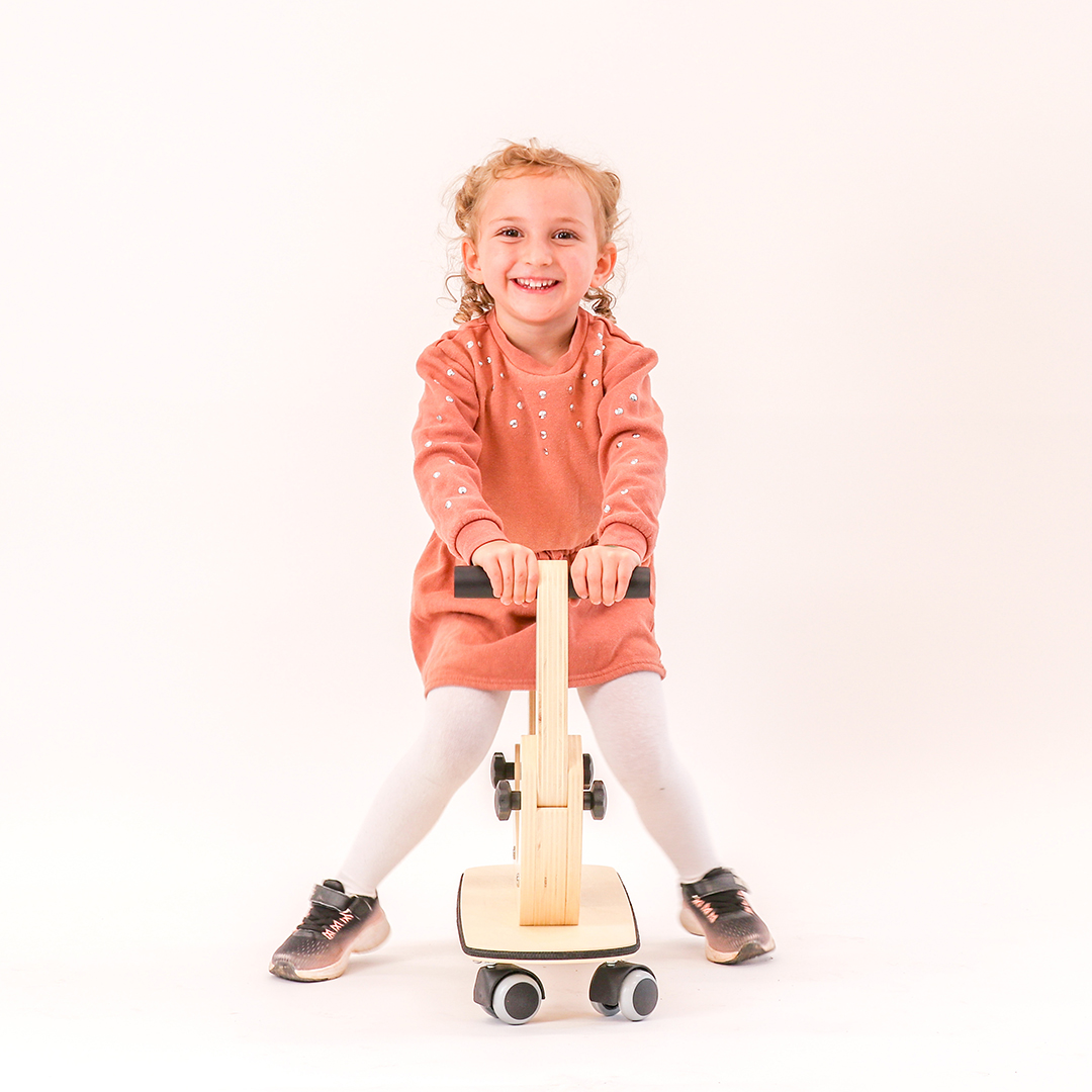 Pri najmlajših je vožnja s takim poganjalcem lahko prva samostojna vožnja v življenju. Trdna in kompaktna lesena konstrukcija pa brez težav prenese zahtevnejšo vožnjo, z vrtenjem in driftanjem, ki jo obvladajo zahtevnejši uporabniki.